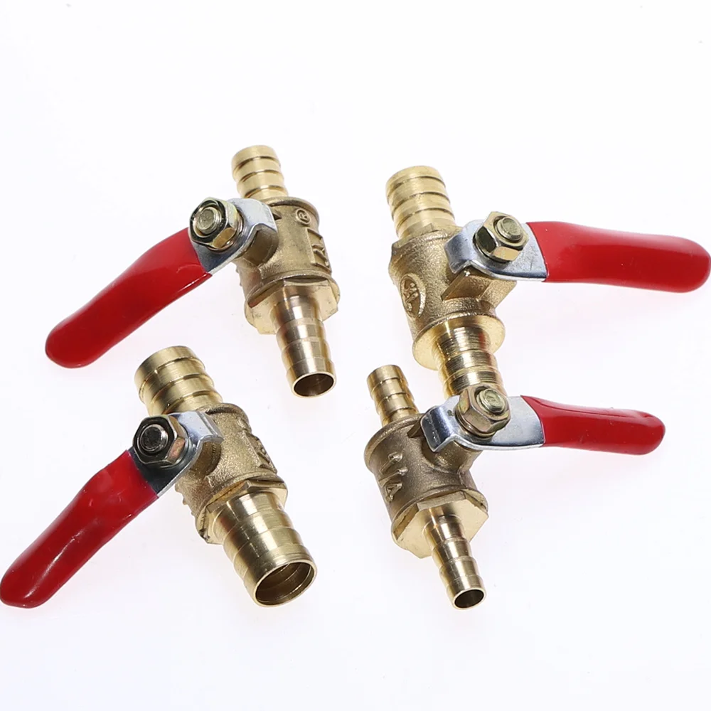 Шаровой кран 6 мм 8 мм 10 мм 12 мм, запорный шаровой клапан, шланг с зазубриной, Встроенный клапан для воды, масла, воздуха, газа, топливной линии, маленький латунный шаровой клапан