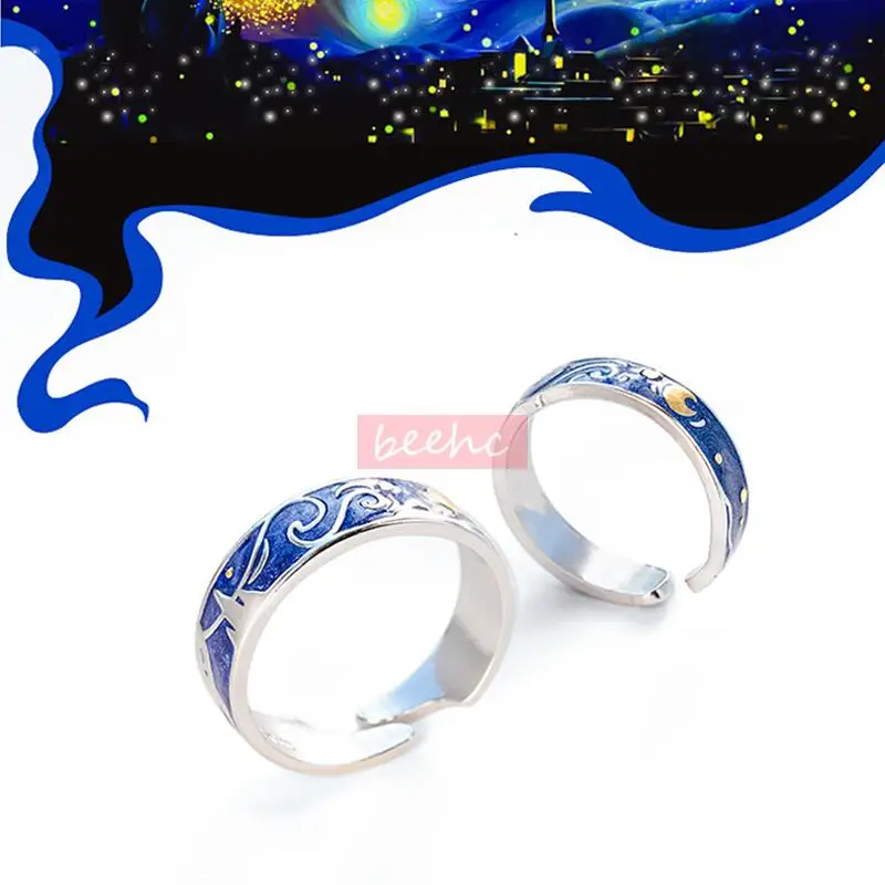 Роскошный бренд Ван Гог ночь открыто кольца для мужчин и женщин про...