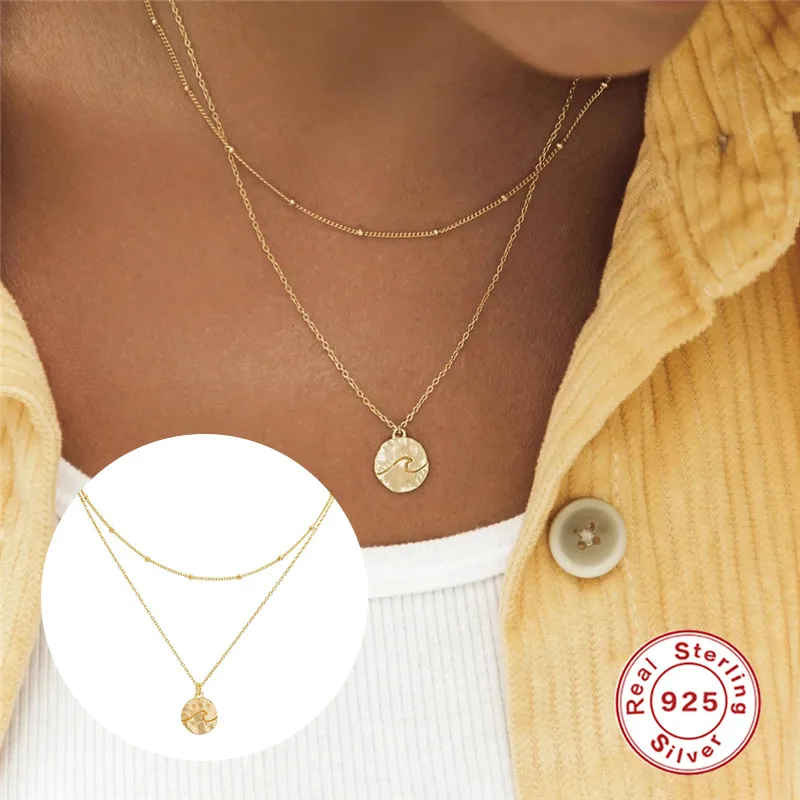 ROXI двойные цепочки, волнистый круглый кулон для карт, ожерелье для женщин, ювелирное изделие из стерлингового серебра 925 пробы, Очаровательная цепочка, чокер, колье для женщин