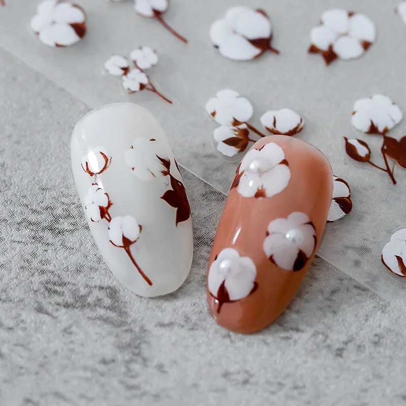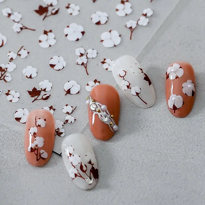 1 лист хлопковых 3D наклеек для дизайна ногтей Цветочные дизайнерские наклейки для ногтей Маникюрные 3D аксессуары наклейки для ногтей