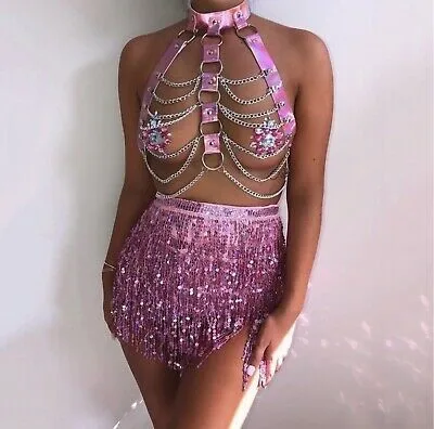 Мини-юбка женская с бахромой, пикантная мини-юбка с блестками, с ре...