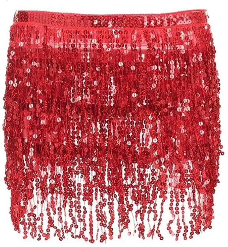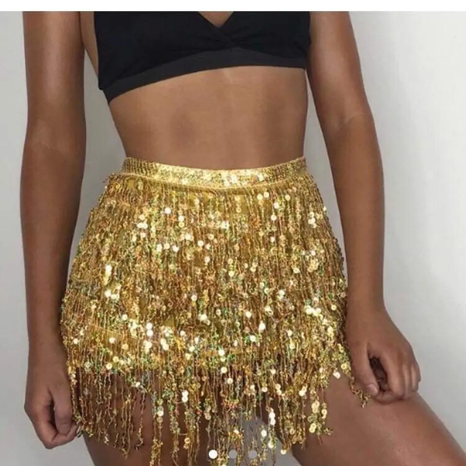 Женская юбка с блестками и бахромой для танца живота