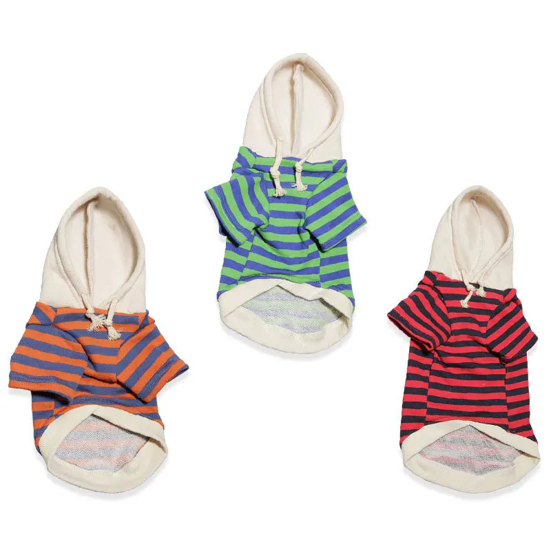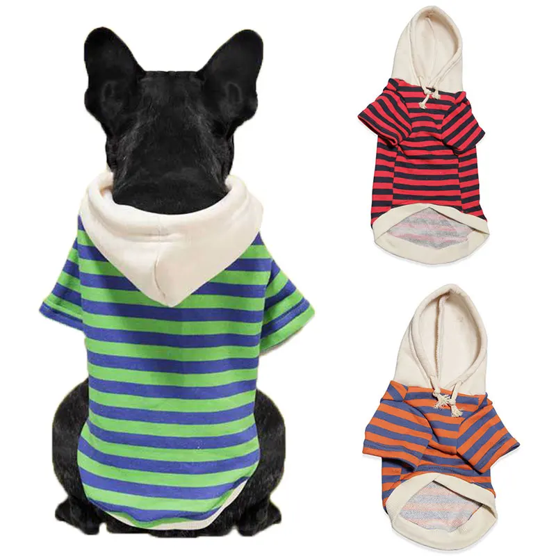 Цветная контрастная повседневная одежда для домашних животных в полоску для маленьких собак, одежда с капюшоном для отдыха, одежда для французского бульдога, осенний костюм для домашних животных