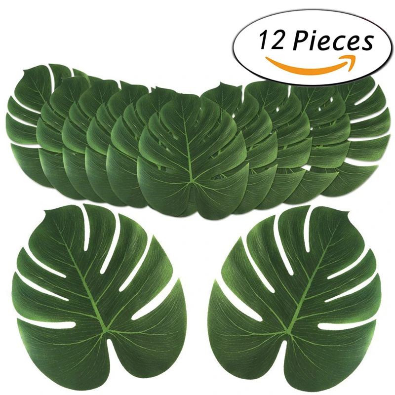 12 шт. искусственные тропические листья для Гавайских джунглей, веч...