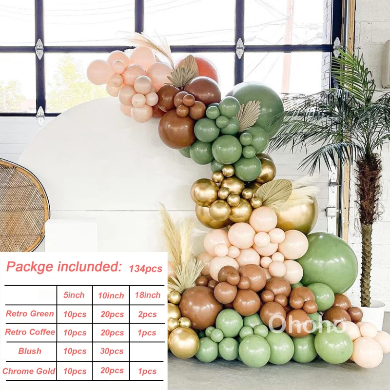 Зеленый Румяна металлический золотой воздушные шары-гирлянды компле...