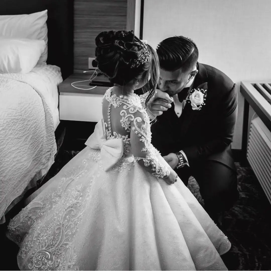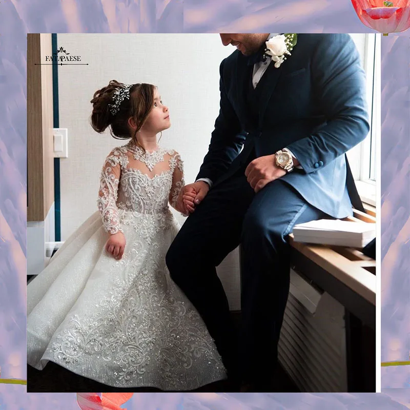 Платье FATAPAESE с длинным шлейфом для девушек, роскошное бальное платье с бантиком, с цветами, святой принцессы, Причастия