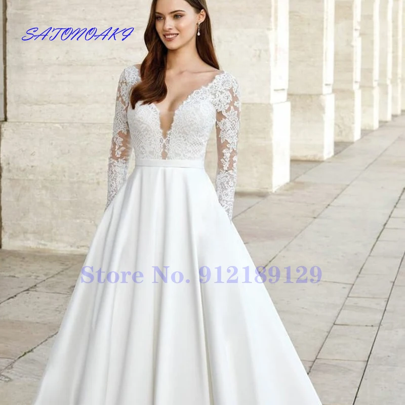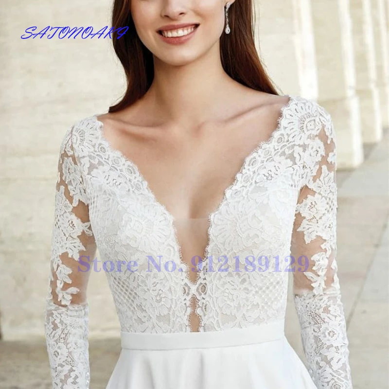 Женское свадебное платье с длинным рукавом, V-образным вырезом и от...