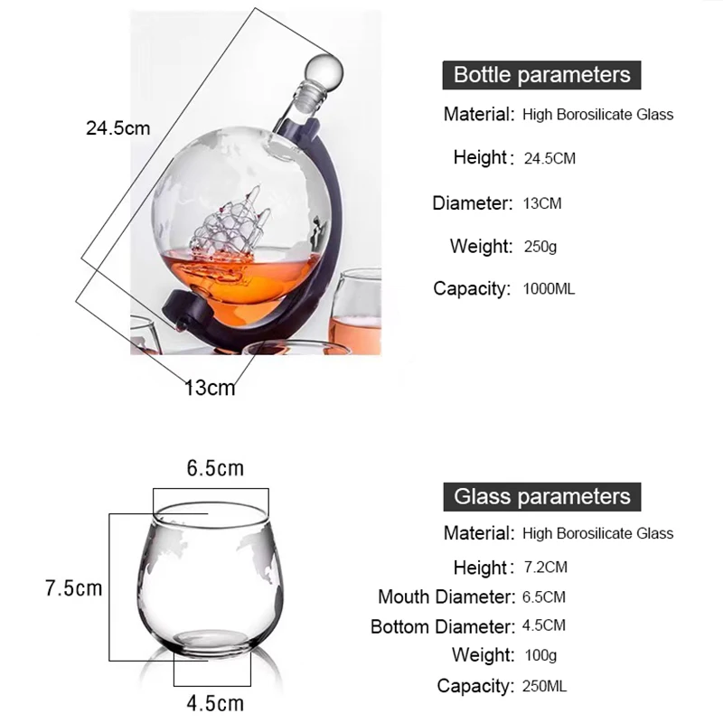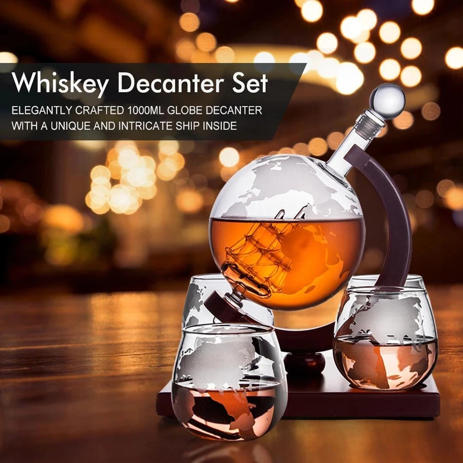 1. Набор графина для виски: высококачественный графин для виски поставляется в комплекте с ручной выдувкой, элегантно изготовленный графин с объемом 850 мл с уникальным и замысловатым кораблем внутри. Сделать любой алкоголь более интересным и привлекательным. Наш Глобус расположен на красивом поддоне из красного дерева.2. Идеальный подарок: визуально потрясающий и вдумчивый подарок на Рождество, Новый Год, День Святого Валентина, День отца, свадьбу, юбилеи, вечеринки, дни рождения, домашняя одежда и многое другое.3, премиум-Материал: ваш набор из стекла для виски изготовлен из двойного толстого боросиликатного стекла, которое чувствует себя твердым в руке. Это 100% без свинца, так что вы можете быть уверены в безопасности.4. Широкое применение: Предмет разговора, который впечатлит. Специально для voyager, путешественника, истинного ценителя и rebel Moho в нас всех.