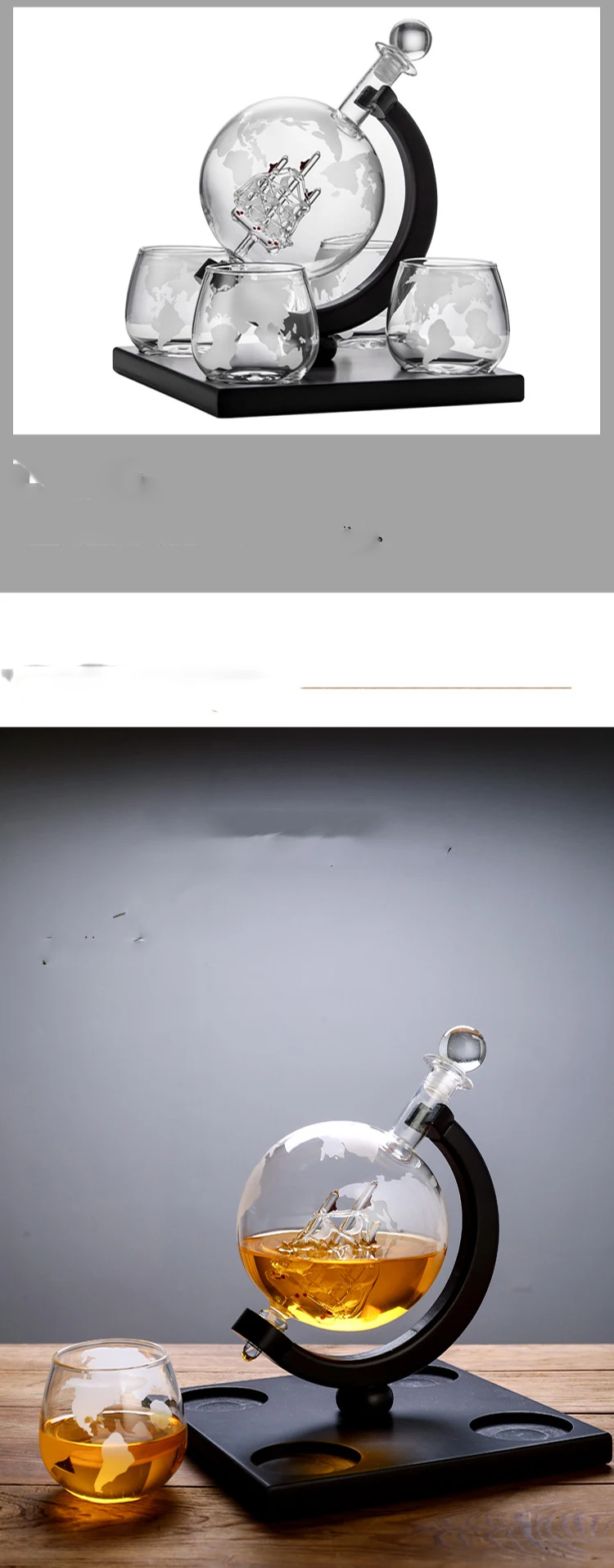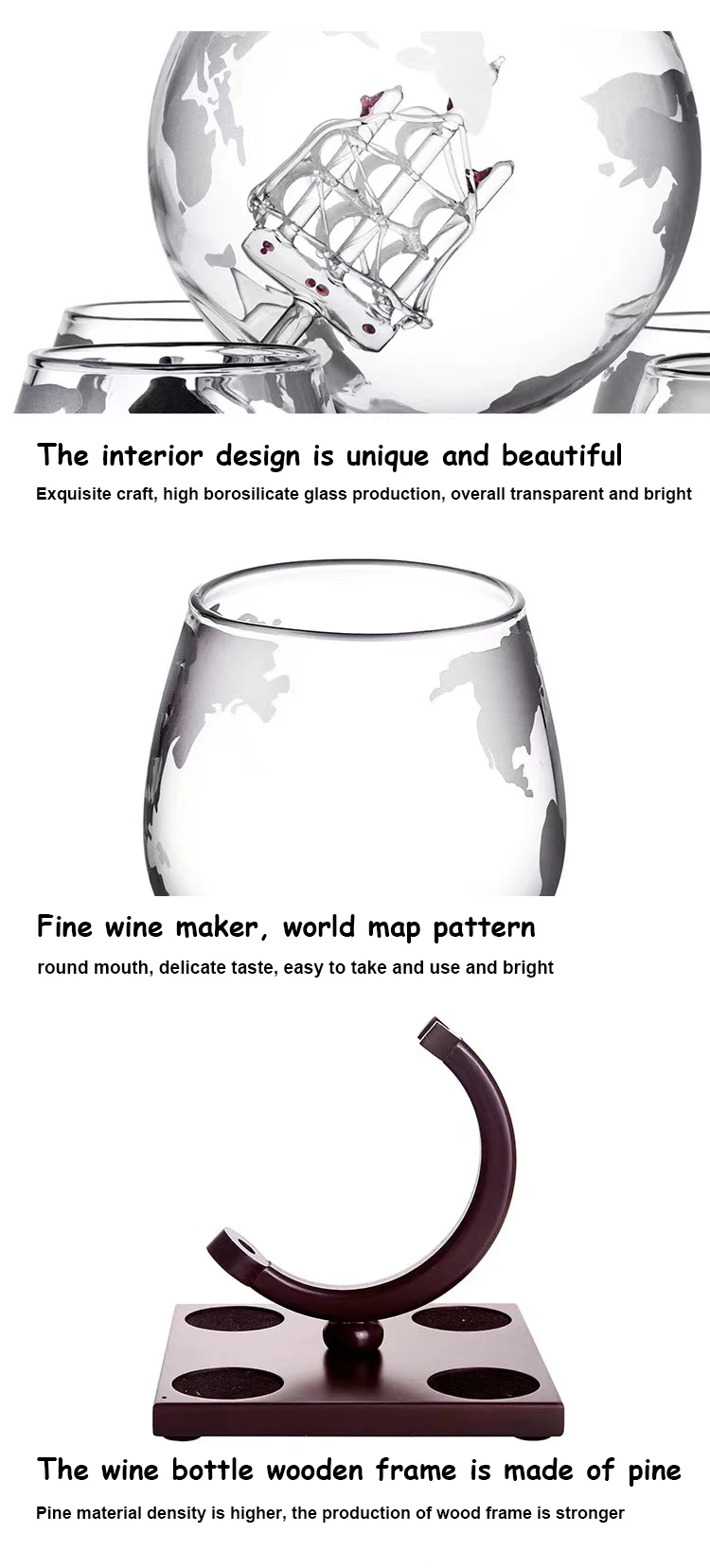 Product componentsGlobe wine bottle*1+cup*4+wood stand*1