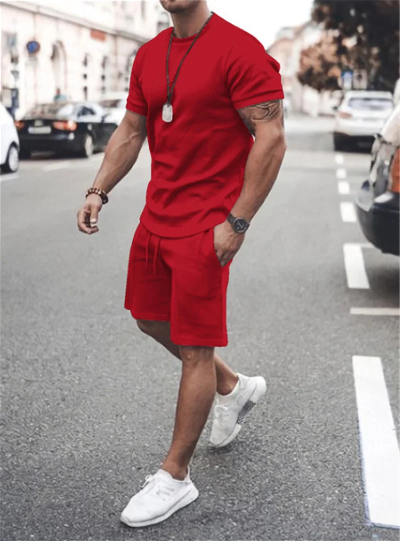 Костюм спортивный мужской однотонный из футболки с коротким рукавом и шортов