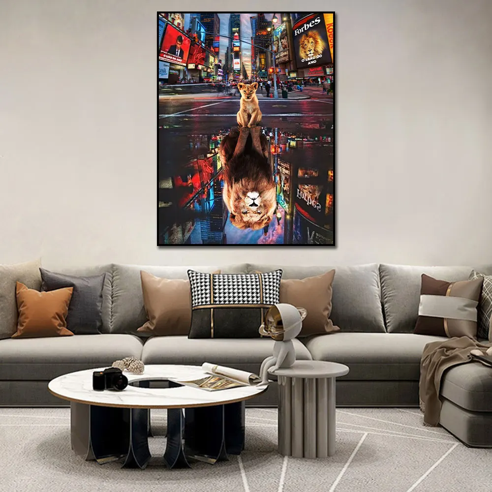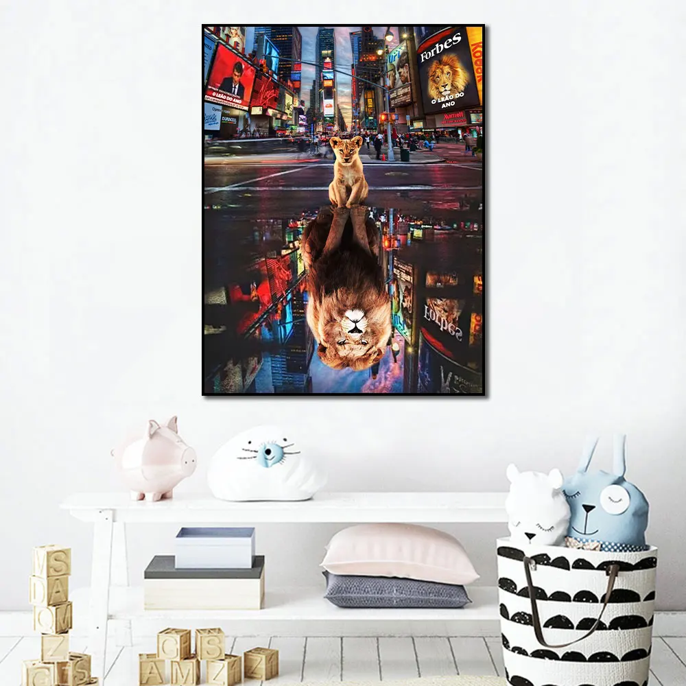 Картина на холсте с изображением Лев, животных, поп-арт, граффити, Уличный настенный Декор, домашнее украшение, картина для гостиной без рамки