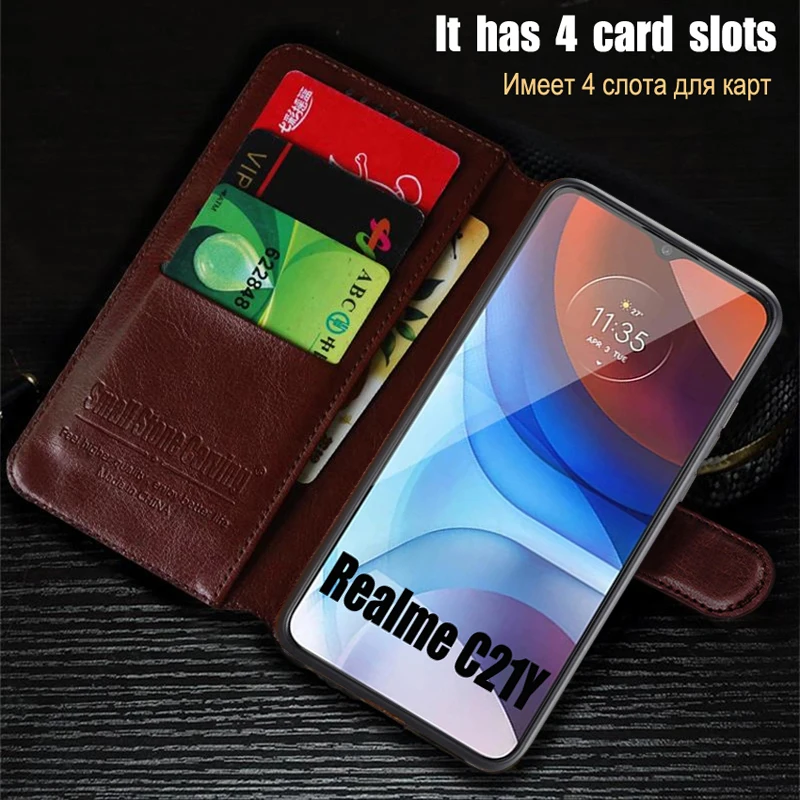 Кожаный чехол для Realme C21Y, чехол, кошелек, флип-подставка, чехол-книжка на Realme C21 RMX3201 C21Y RMX3261, чехол с магнитной застежкой и отделением для карт