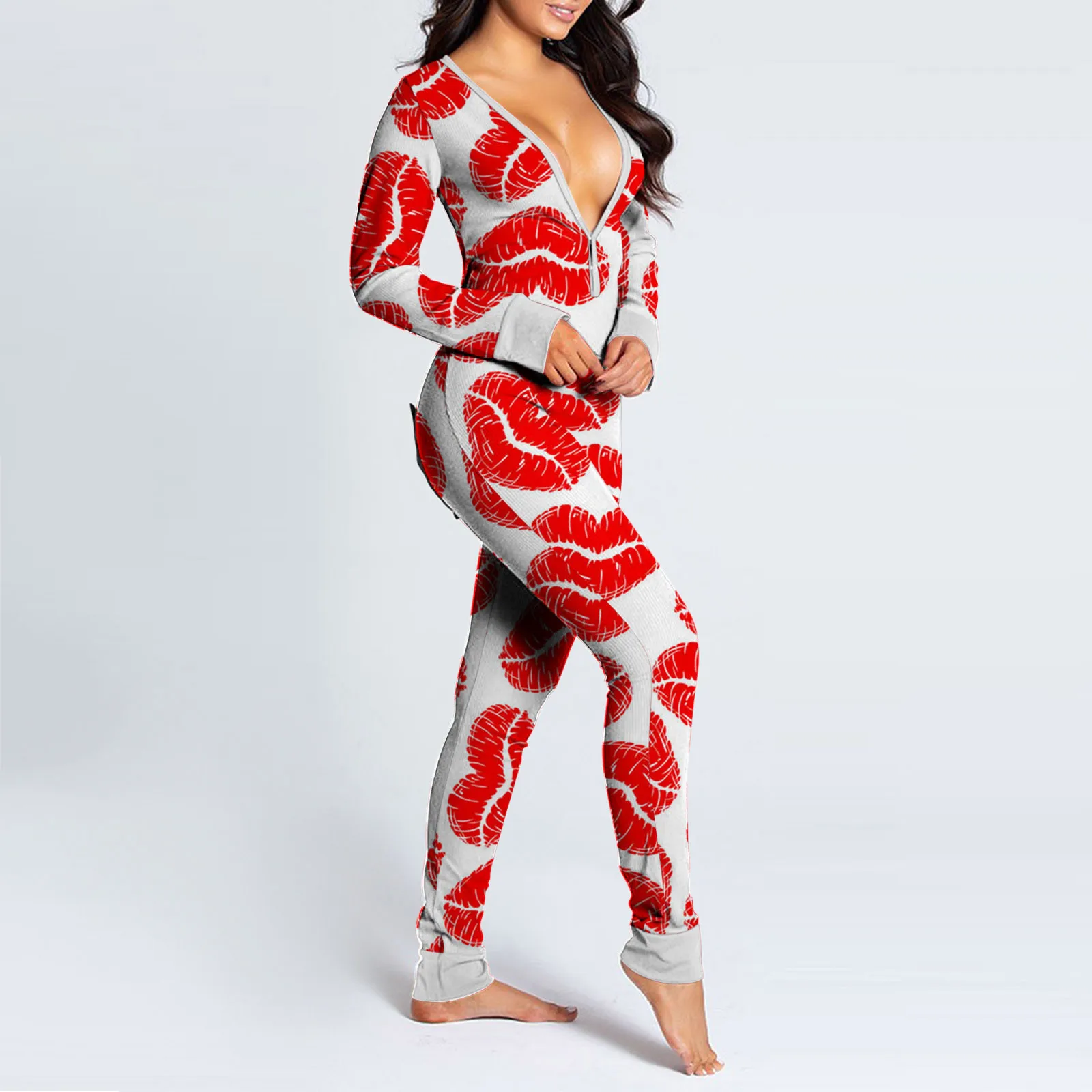Комбинезон женский в форме сердца, Пижама-комбинезон на пуговицах, ...