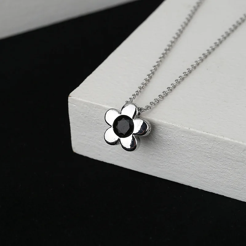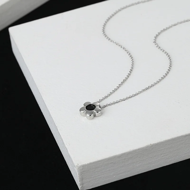 VOQ серебряный цвет черный Один бриллиант маленький цветок ожерелье пять лепестков цветок цепь ключицы Дамский подарок ювелирные изделия