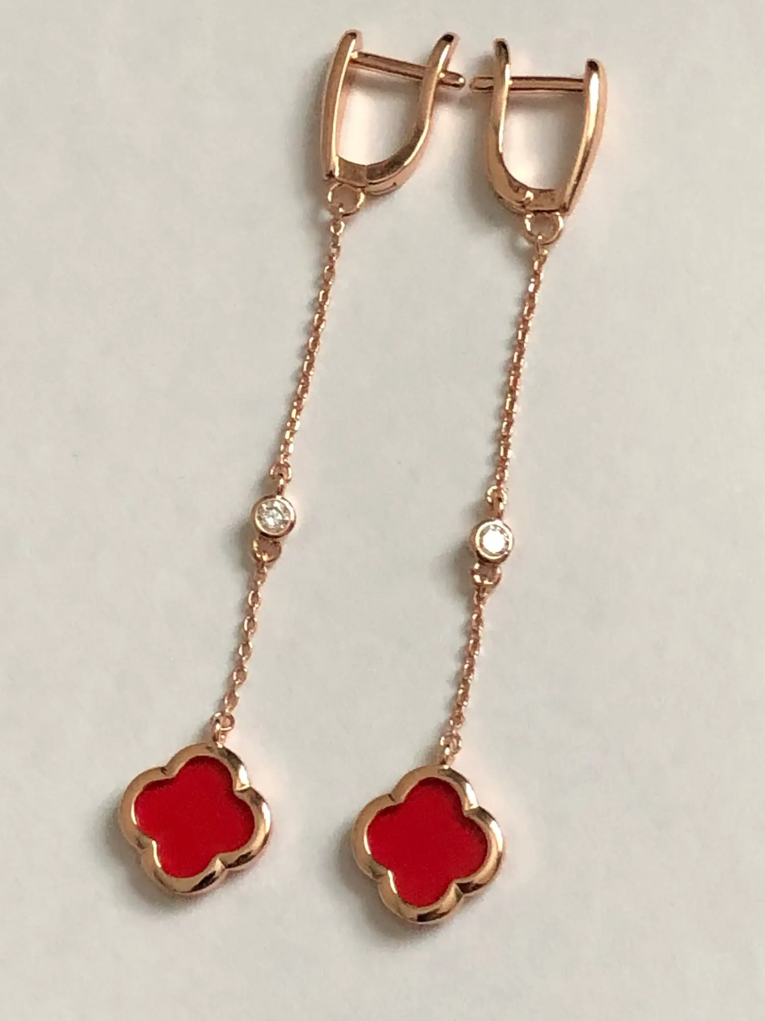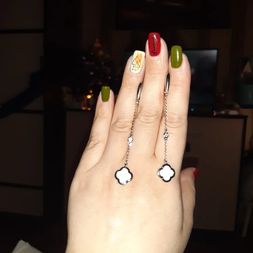 Интересные серьги в форме клевера. Описанию соответствуют. Качество отличное. Подойдут как для повседневной носки так и для праздника. Просьба к продавцу - передать производителю пожелание добавить в производство кольцо и подвеску в комплект к серьгам