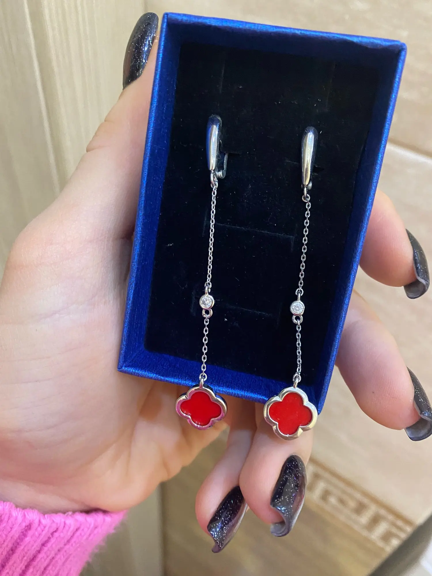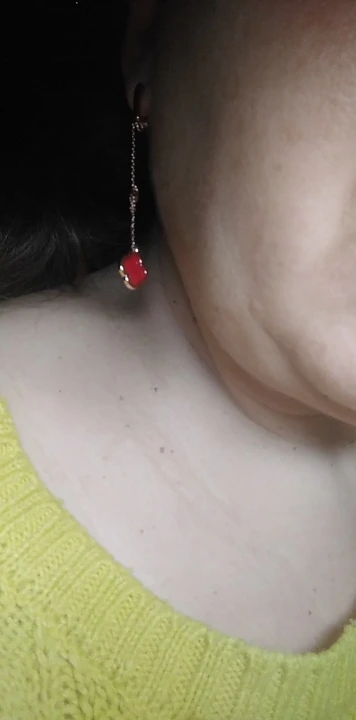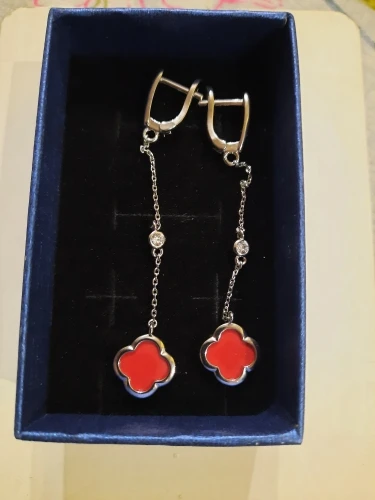 Они выглядят здорово. Но у меня почему то уши очень сильно болят после них. Это явно не серебро и красные висюльки маленькие. Доставка очень быстрая. За неделю, может быстрей даже получила.