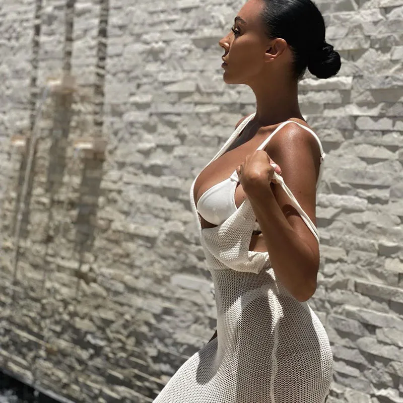 Белое сексуальное пляжное платье SRUBY, женское ажурное платье с от...