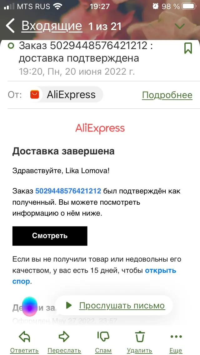 быстрая доставка все отлично Спасибо