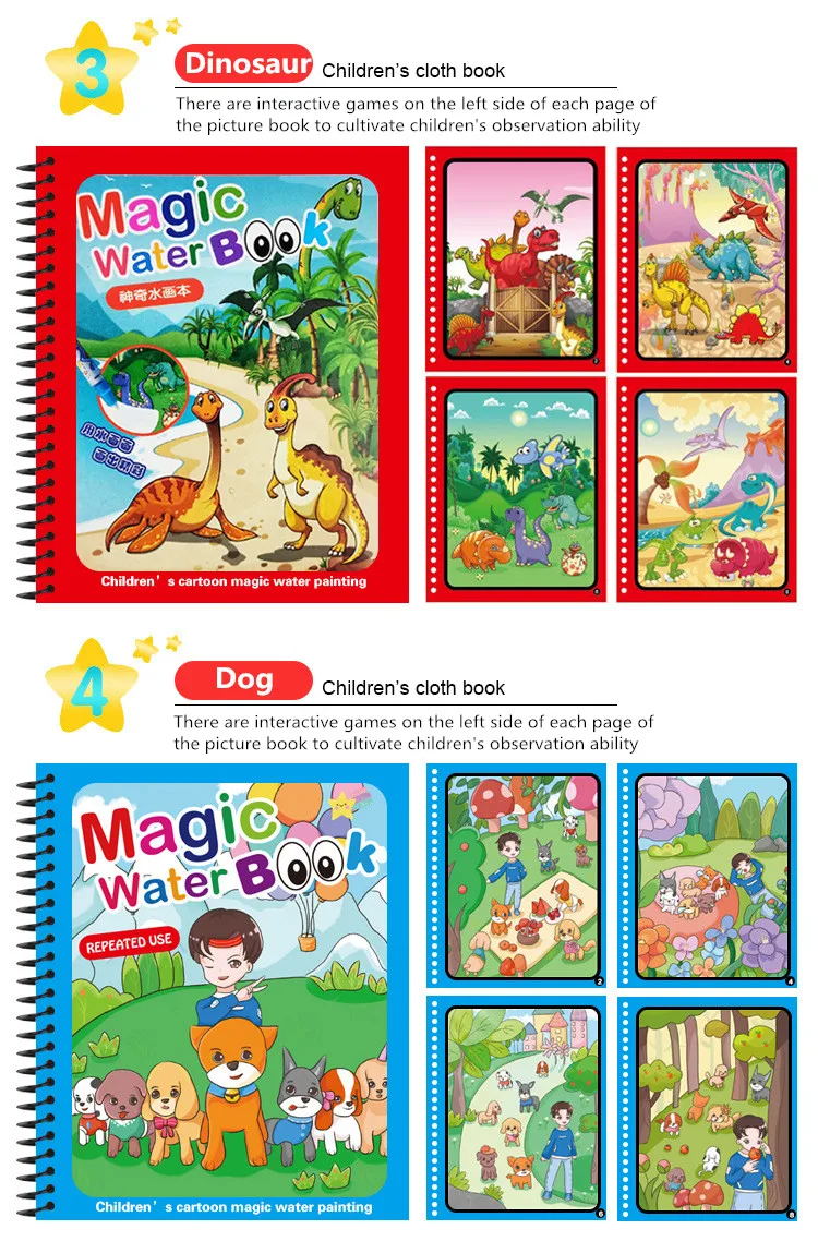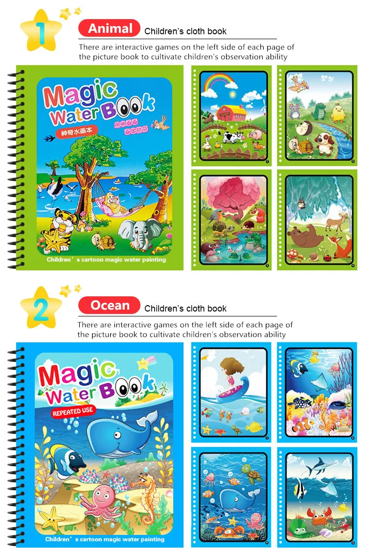 Волшебная книга для рисования водой, игрушки Монтессори, многоразовая книга для раскраски, сенсорная книга для раннего развития, игрушки для детей