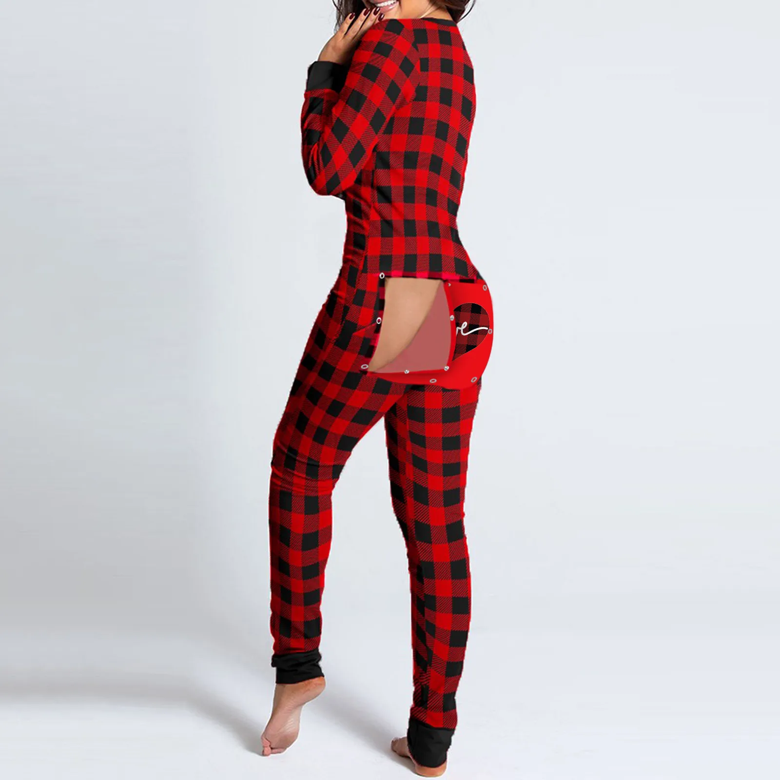 Женский комбинезон, пижама в клетку с принтом, нижнее белье, функци...