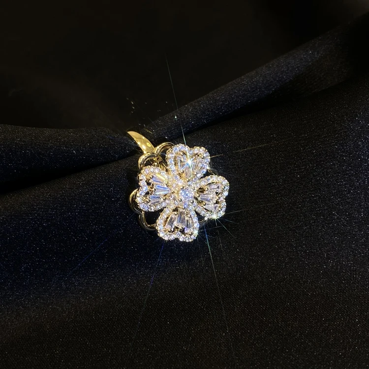 Лидер продаж, кольцо со сверкающим клевером и цирконом, простое тем...