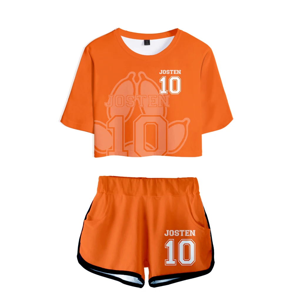 Новое поступление, уличная одежда 3D the foxhole, Повседневный пуловер из двух предметов, футболка и брюки в стиле мини-двора, Y2K, женская классическая одежда