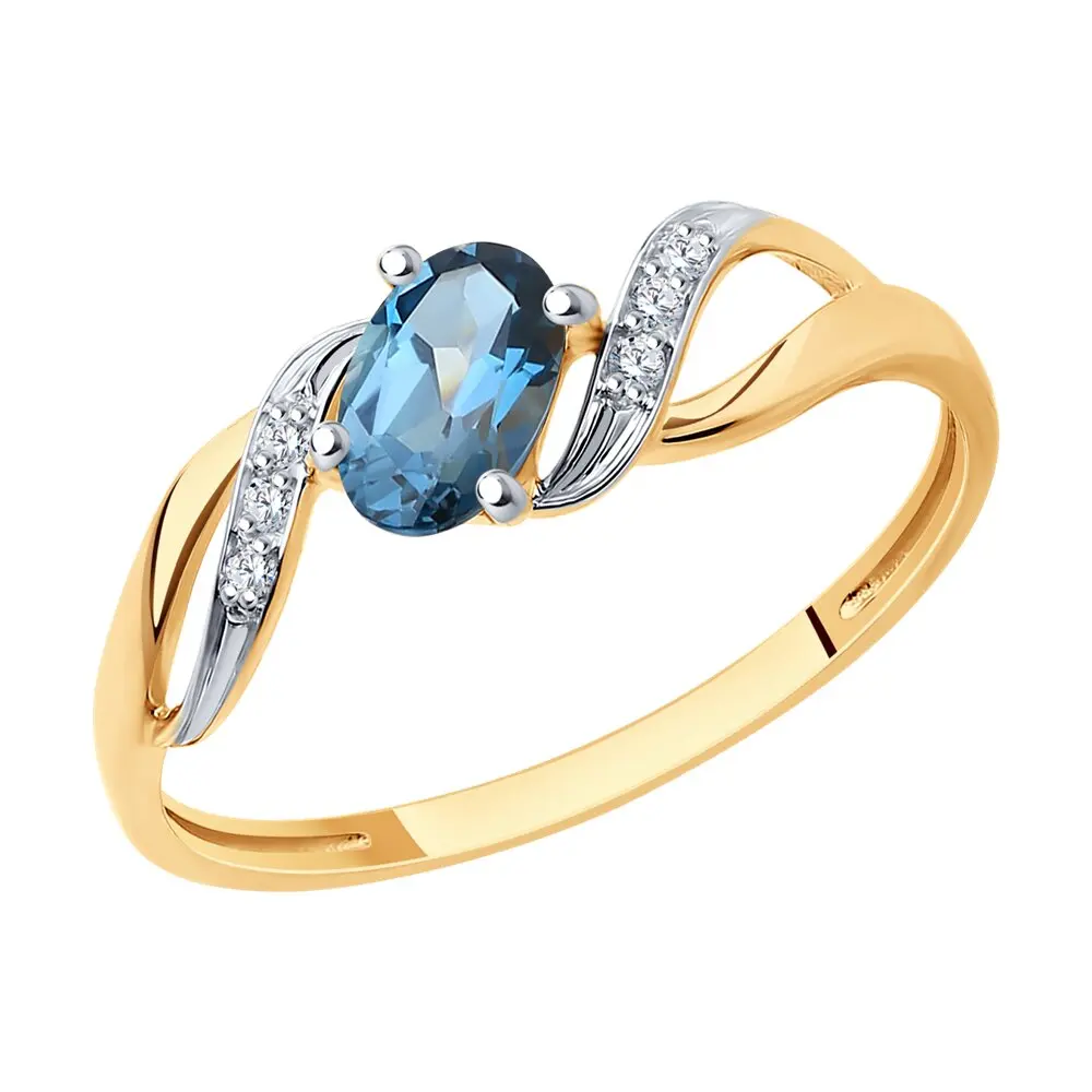 Кольцо SOKOLOV Diamonds из золота с бриллиантами и лондон топазом, Золото, 585, Женское, Оригинальная продукция, Новинка