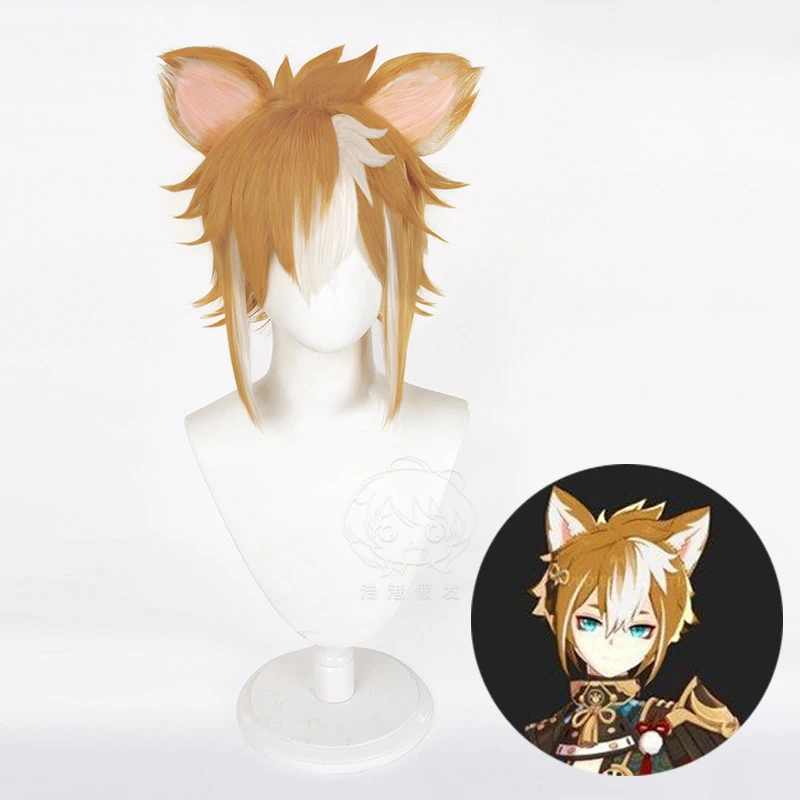 Парик Gorou из коричнево-желтых волос, парик для косплея Game Genshin Impact, синтетический парик для косплея, 40 см