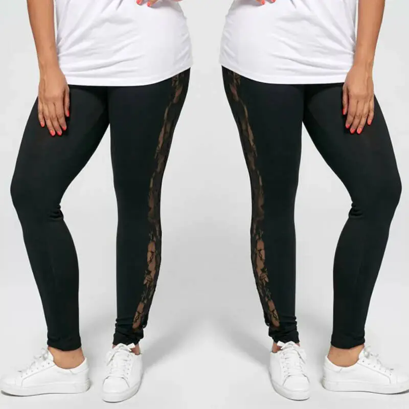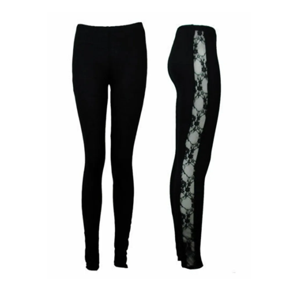 Женские цветочные кружевные брюки с высокой талией, черные леггинсы с боковыми вставками и вырезами, женская одежда в стиле пэчворк