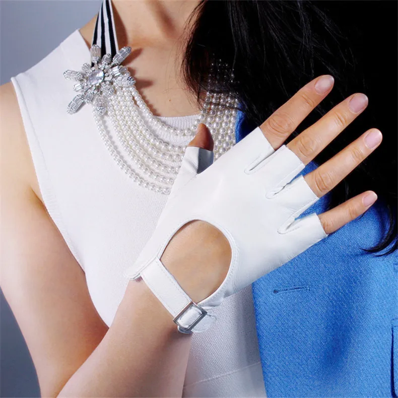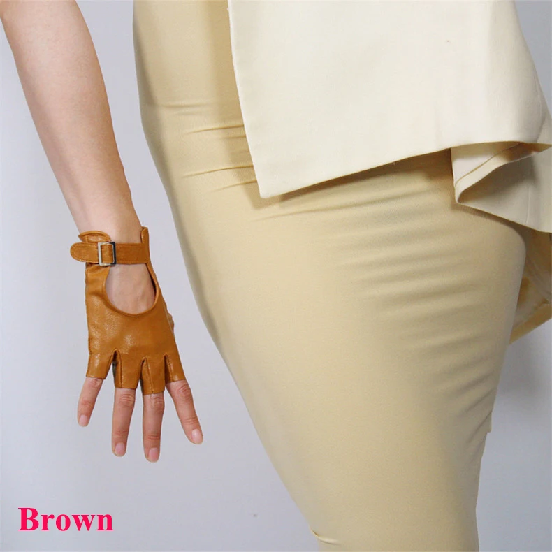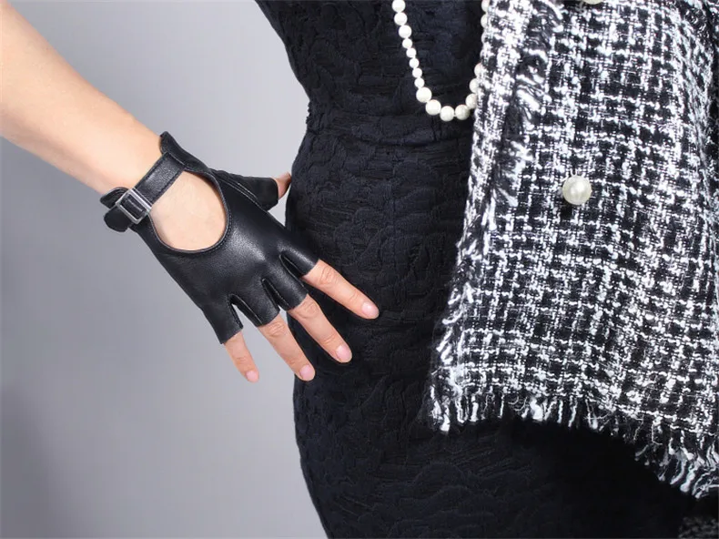 Женские перчатки без пальцев, из натуральной кожи, с полупальцами