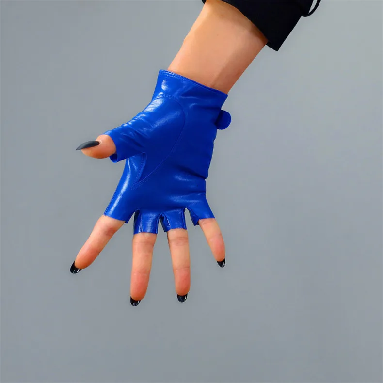 Перчатки без пальцев женские из натуральной кожи с сенсорным экраном из чистой овчины кобальтовые синие полупальцевые женские перчатки полупальчики WZP63