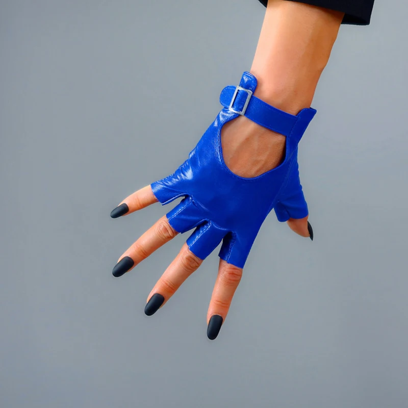 100% настоящие лакированные кожаные короткие перчатки без пальцев ж...