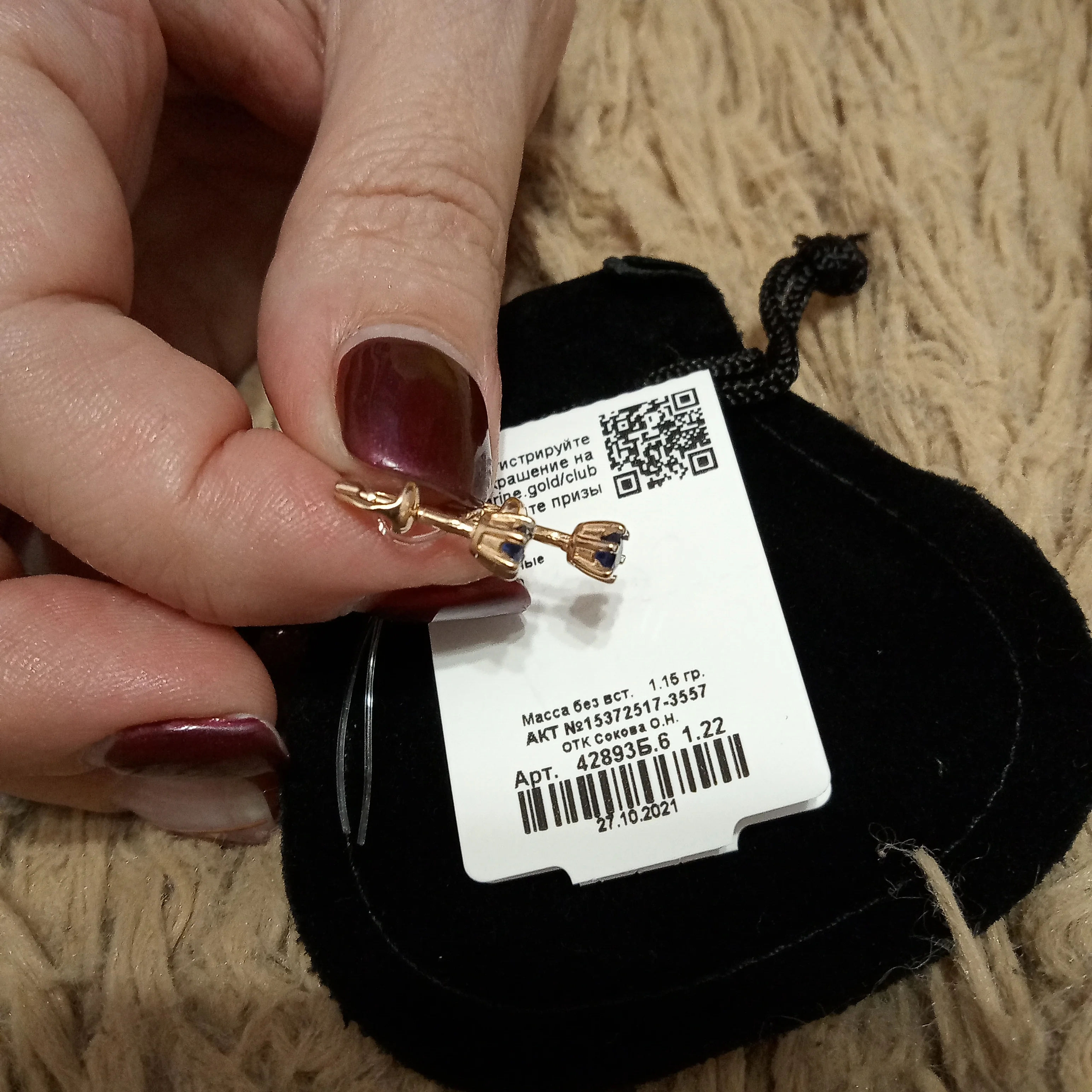 Страна: RU Metal Color: Pure Gold Color Gem Color: Наносапфир Ships From: Russian Federation Доставка: MyMall: Пункт выдачи в регионы 31.12.2021