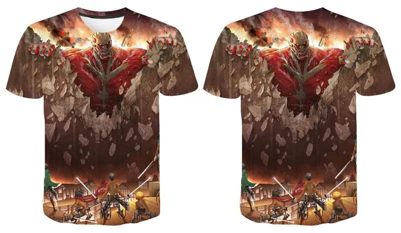 Лидер продаж, летняя футболка с 3D-принтом гигантского Аниме атаки, мужская и женская Повседневная Уличная одежда, крутая рубашка с коротким рукавом и круглым вырезом
