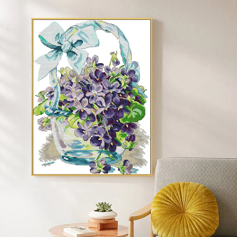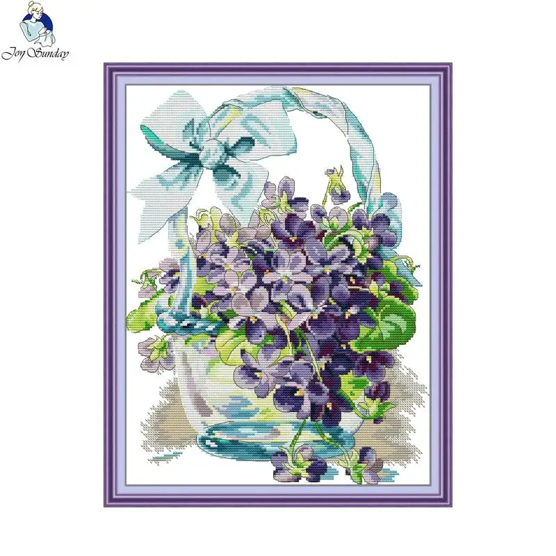 Joy Sunday фиолетовый Набор для вышивки крестиком DIY цветочный узор 14CT 11CT счетная холщовая ткань с принтом вышивка набор домашний декор