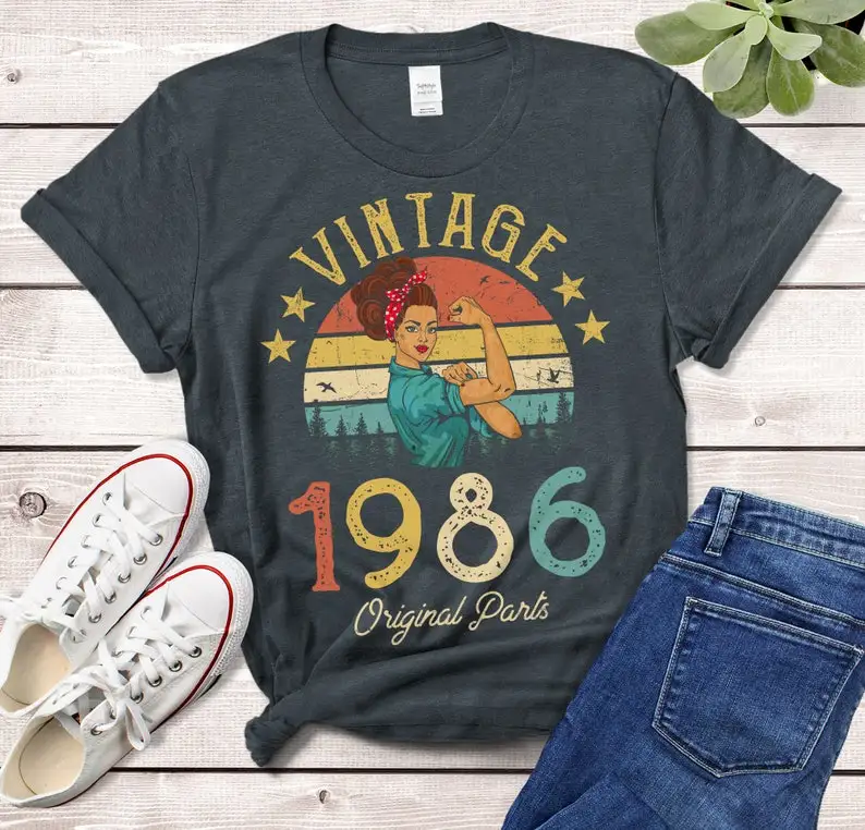 Винтажная Футболка 1986, сделано в 1986 году, 36-й день рождения, подарок для девушки, жены, мамы, день рождения, idea 36, ретро, Классическая хлопковая футболка