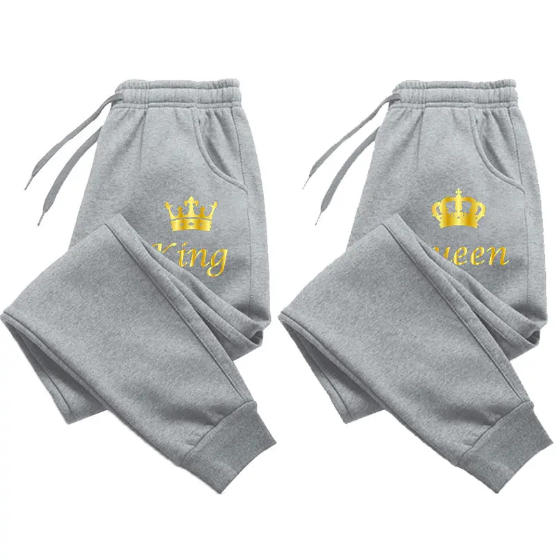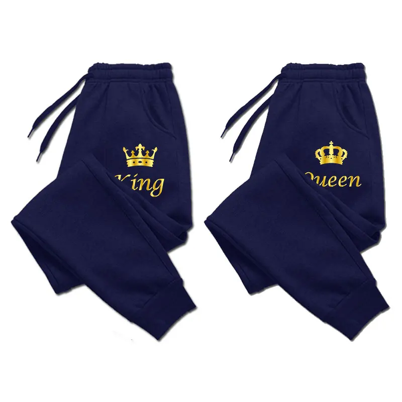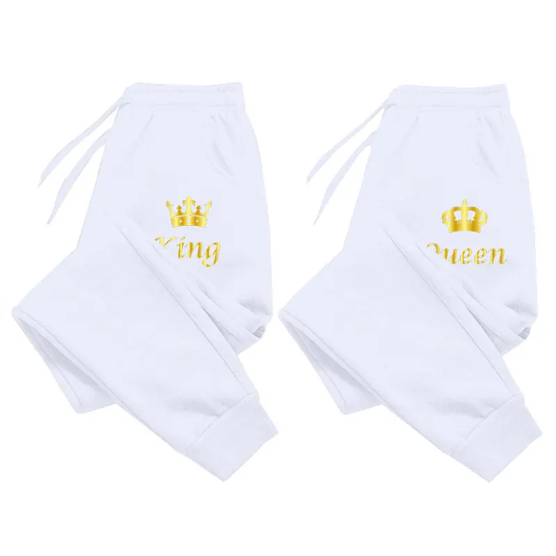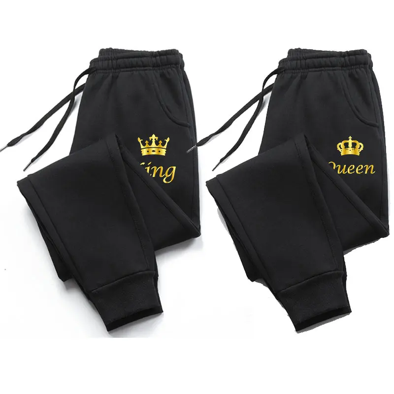 Парные Длинные повседневные тренировочные брюки с принтом KING или QUEEN, мягкие спортивные брюки, брюки для бега