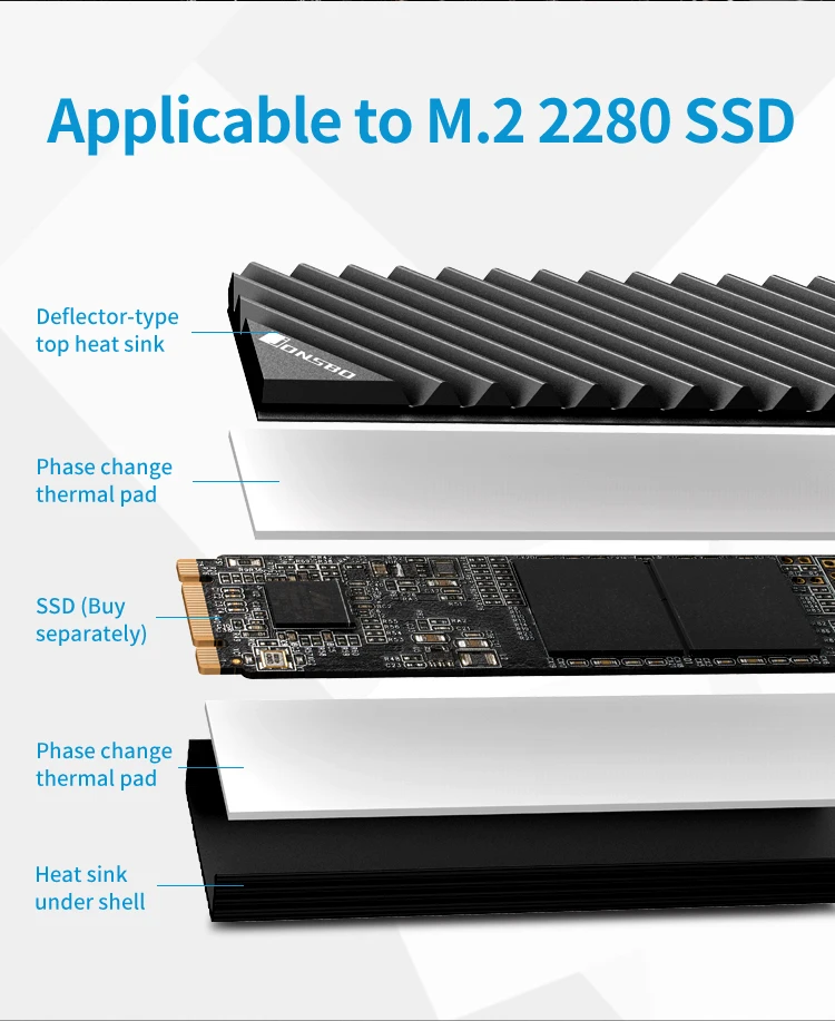 M2 радиатор SSD Jonsbo M2 2280 твердотельный жесткий диск алюминиевый радиатор с тепловой прокладкой для m2 настольного ПК термальная прокладка
