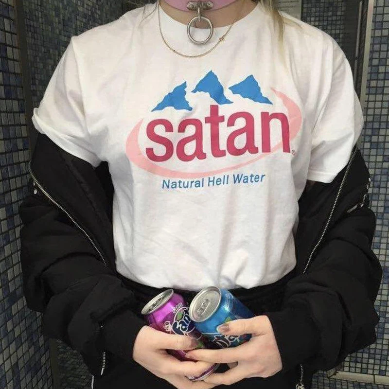 Футболка женская с надписью сатана, модная Милая хлопковая рубашка с принтом природного ада, с коротким рукавом, лето 2022