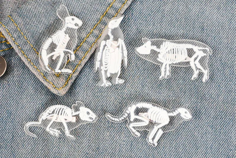 Забавные Животные, скелет, акриловые булавки, броши, кошка, свинья,...