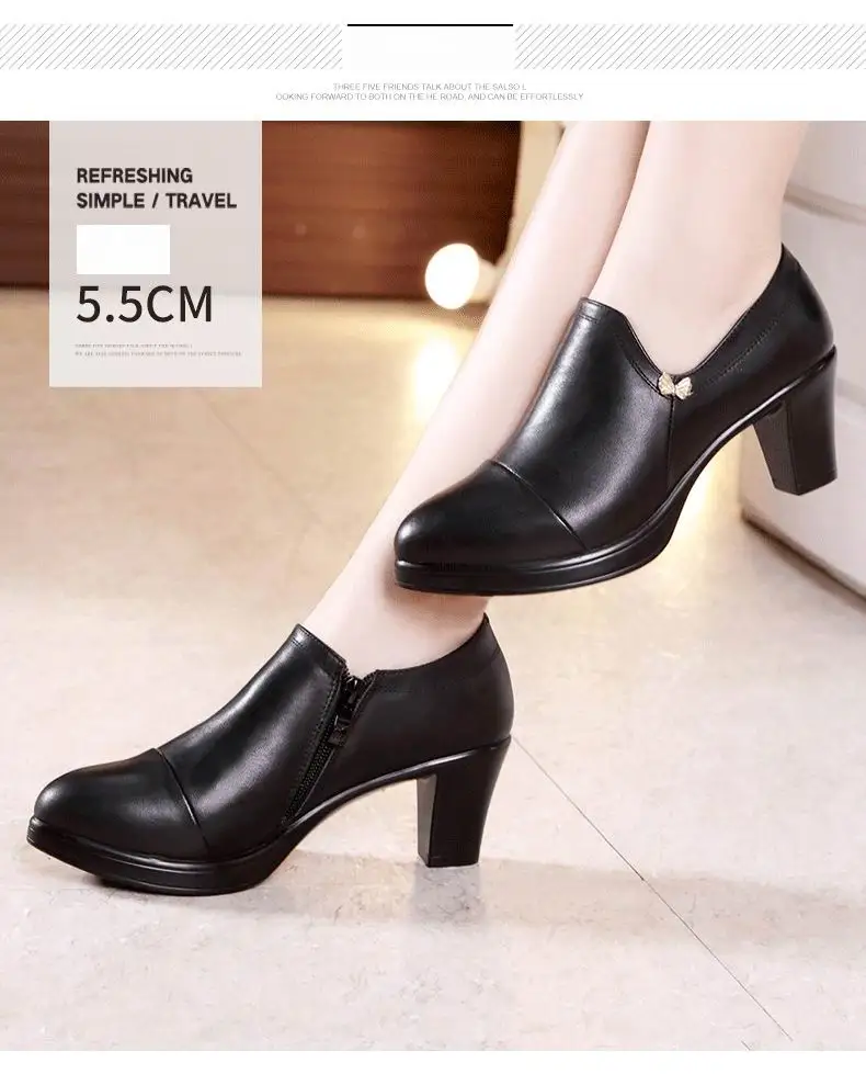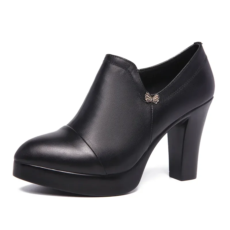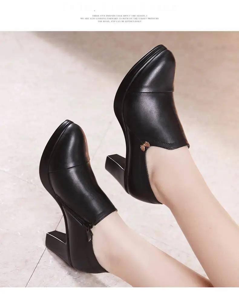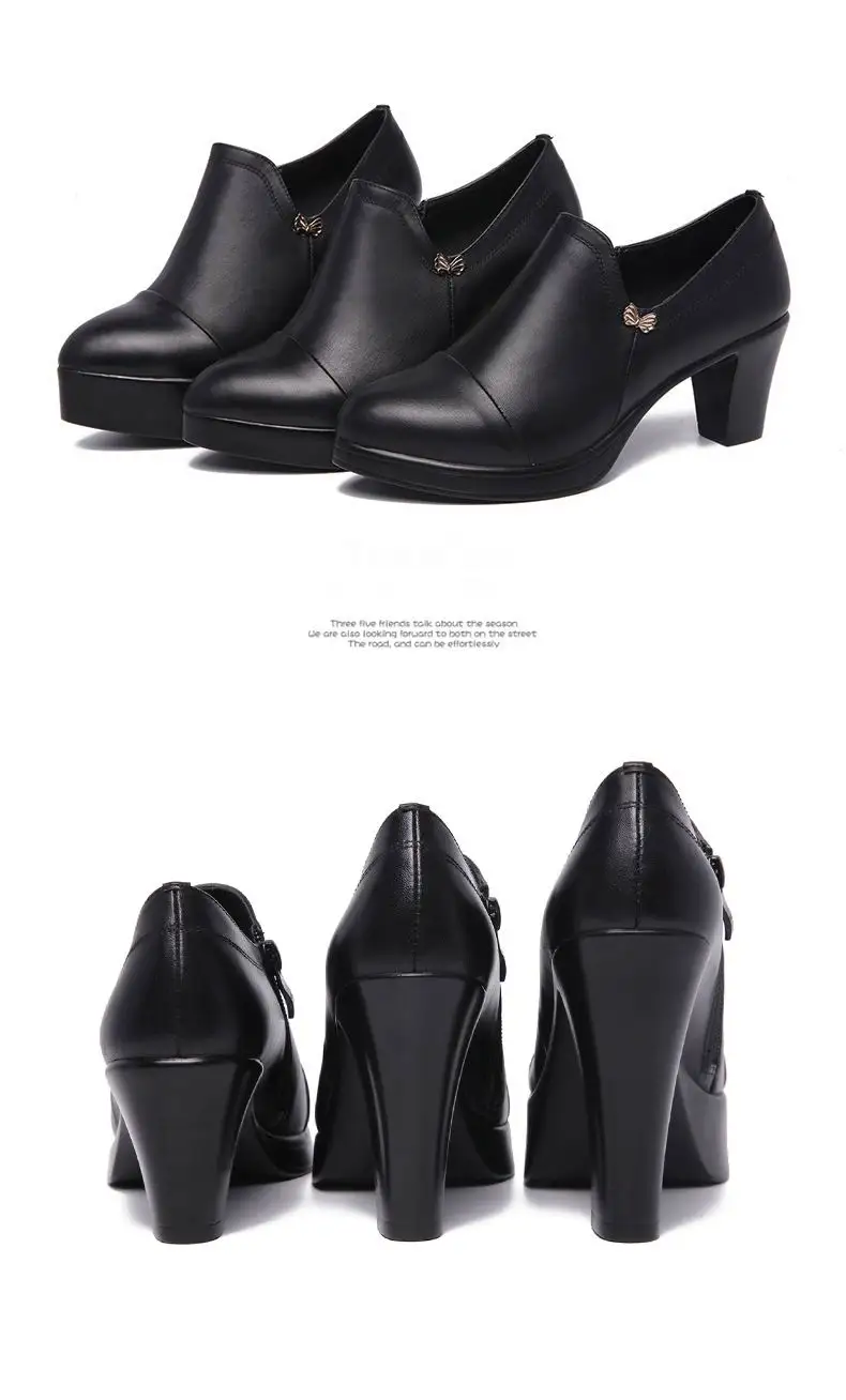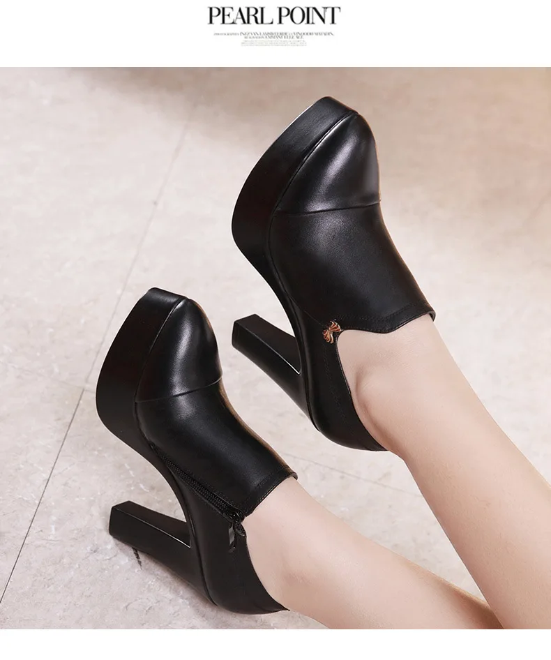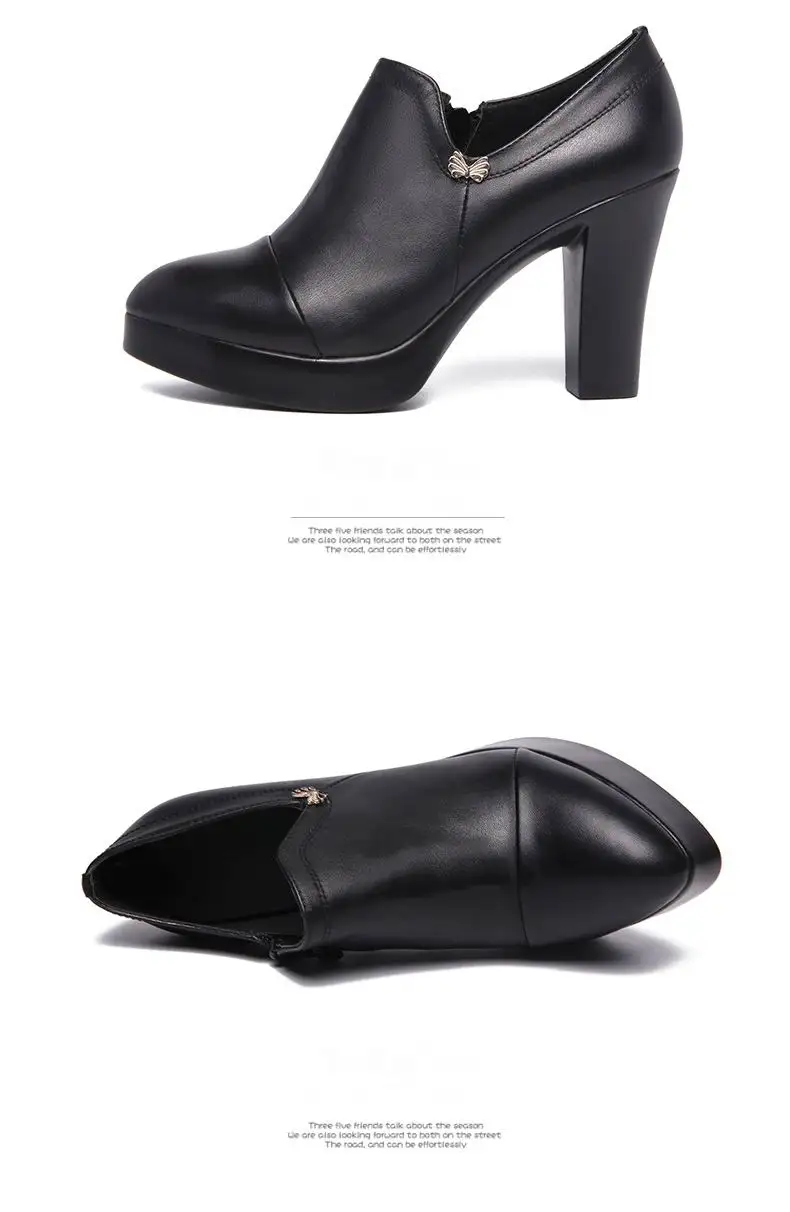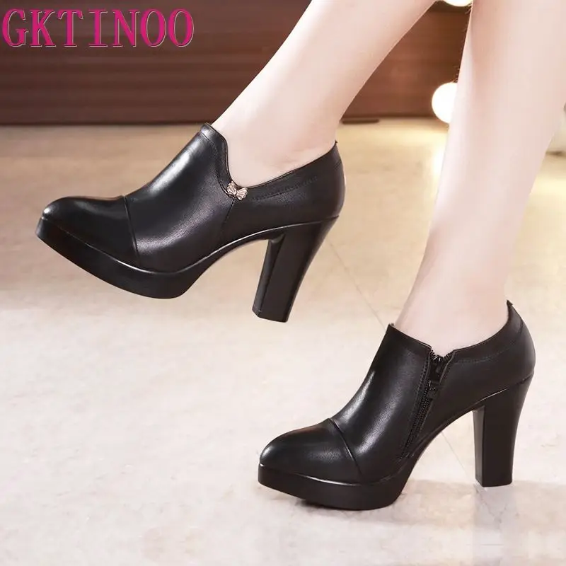 GKTINOOтуфли-лодочки на блочном каблуке с глубоким носком; Женская обувь на платформе; Коллекция 2022 года; Кожаные туфли с острым носком; Женские офисные туфли на высоком каблуке; Цвет черный, 42, 43