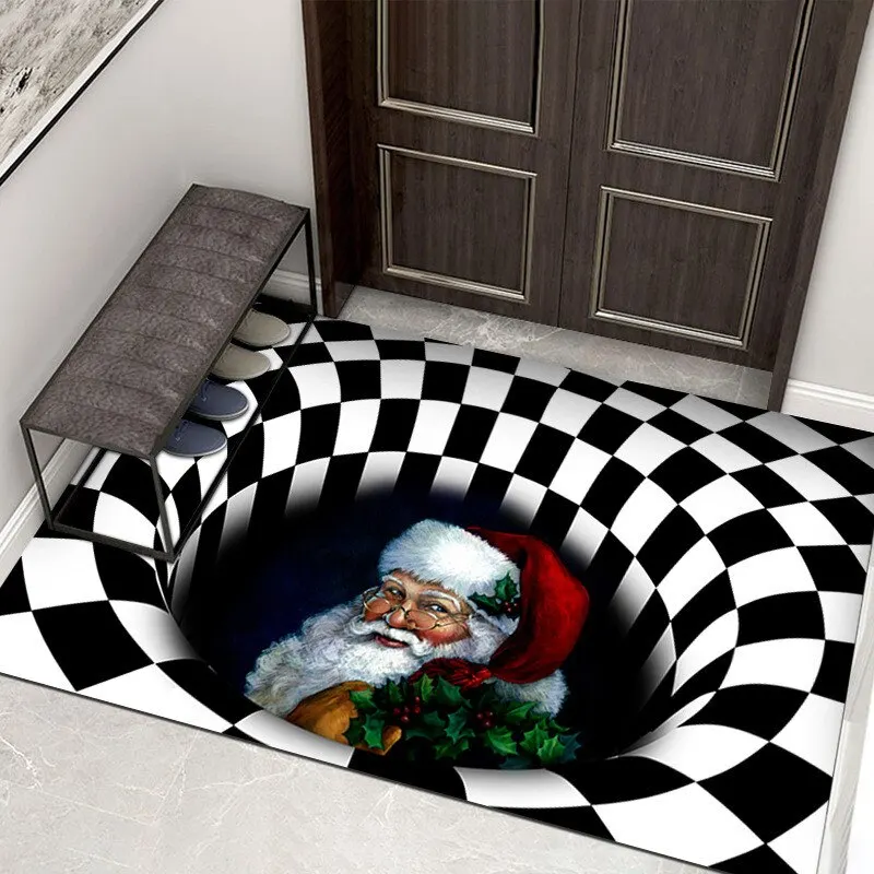 Черный Белый 3D иллюзионный ковер, коврики Санта-Клауса, нескользящ...