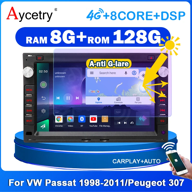 магнитола 2 din android 10 с экраном автомагнитола для Peugeot 307 Volkswagen VW PASSAT B5 MK4 MK5 SHARAN Jetta Bora Polo, транспорт carplay интеллектуальная система видео проигрыватель магнитофон в машину