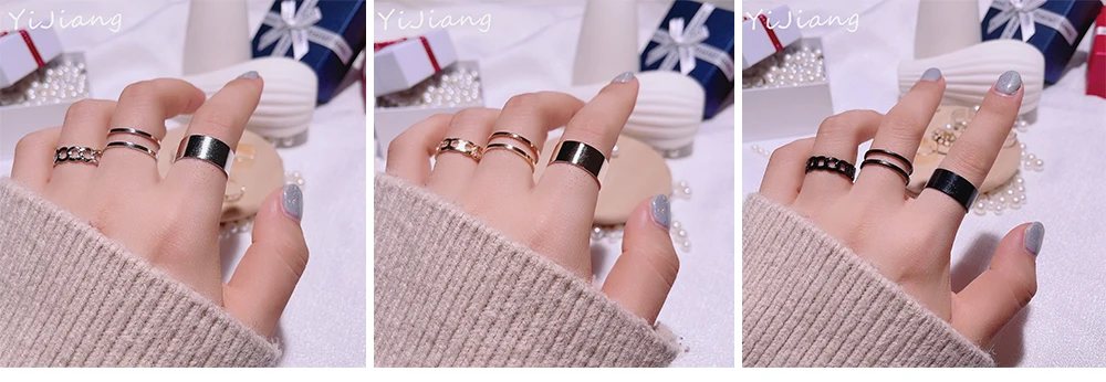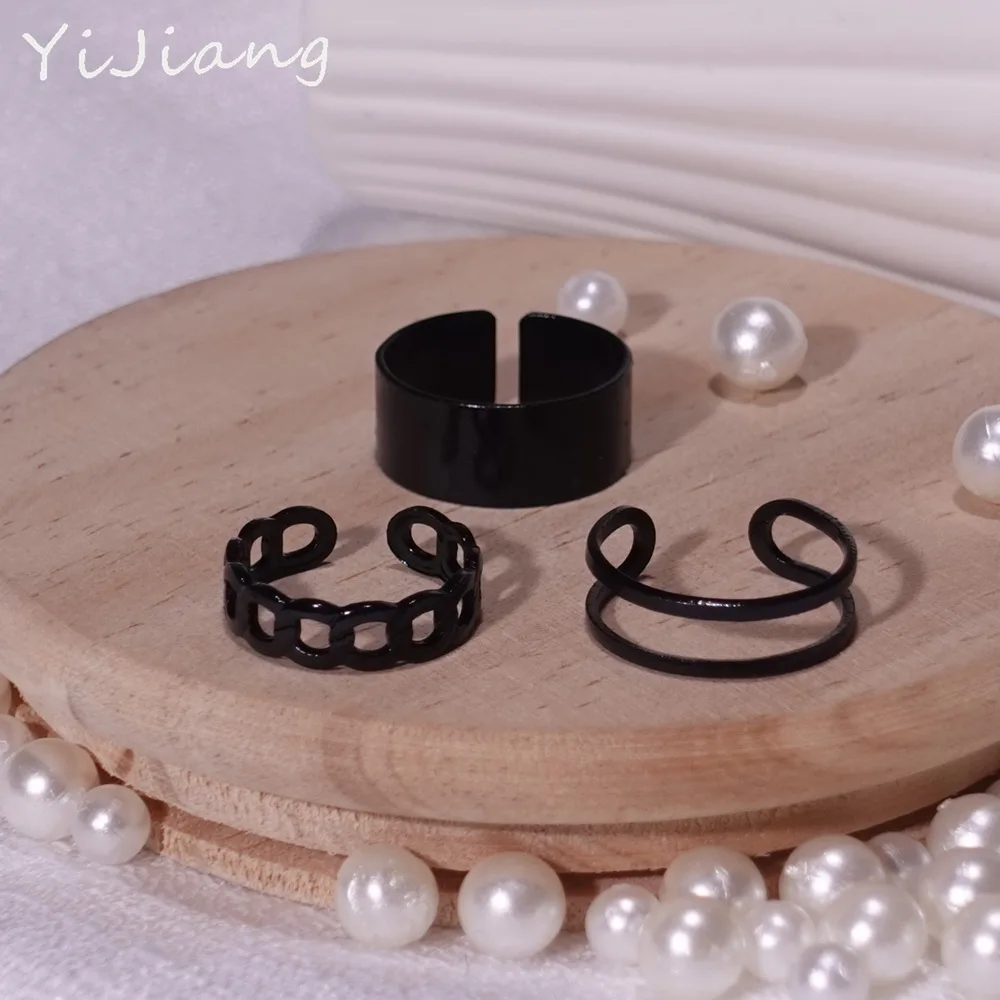 Купи 1 получи 2 3 шт. черные кольца для женщин из нержавеющей стали крутой Регулируемый ювелирный набор для мужчин Бесплатная доставка anillo hombre