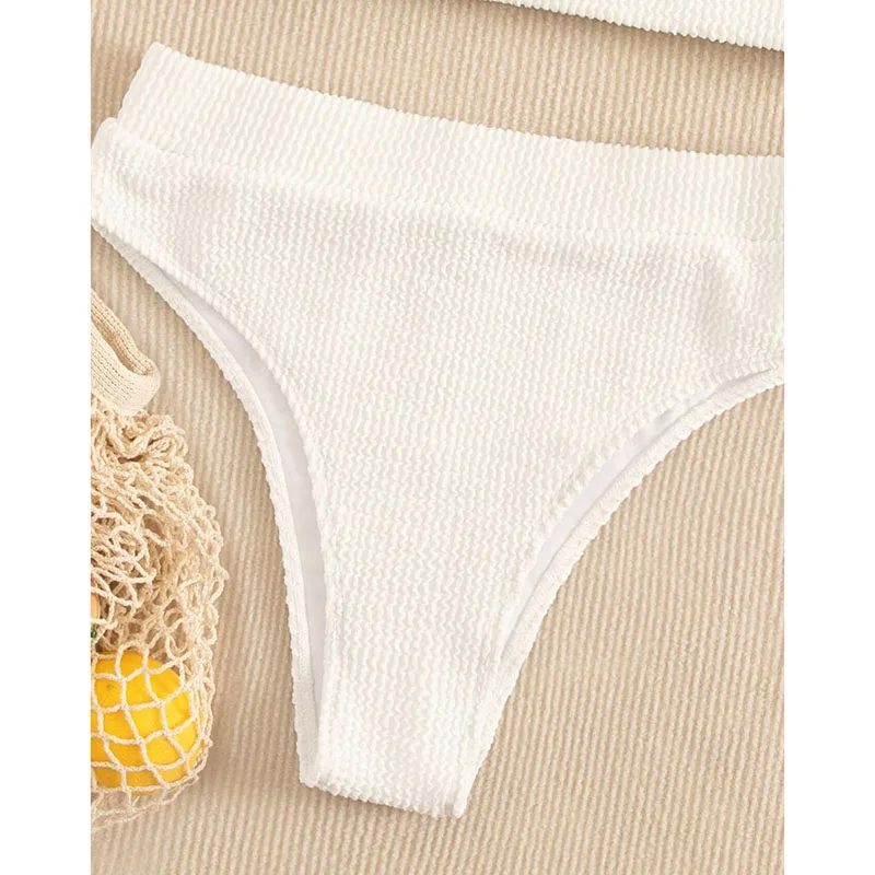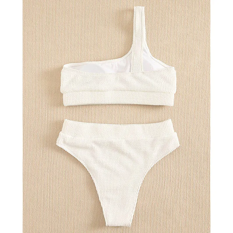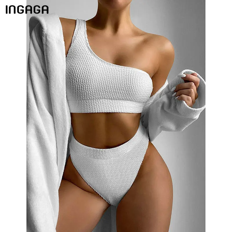 Бикини INGAGA на одно плечо с высокой талией, женский купальник, новинка 2022, текстурированное бикини, пляжная одежда, белый купальный костюм для женщин