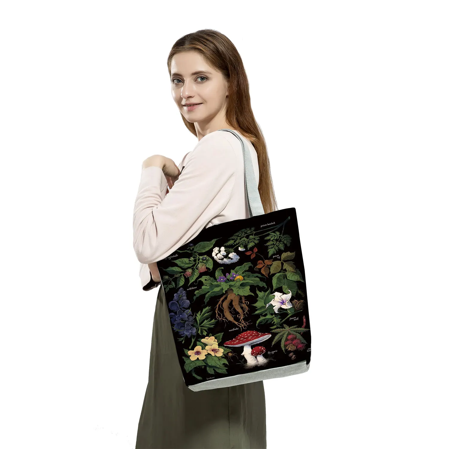 Мультипликационный комический гриб, наплечная сумка с буквенным принтом, повседневная многоразовая сумка для покупок, модная женская японская Сумка-тоут, милая сумка