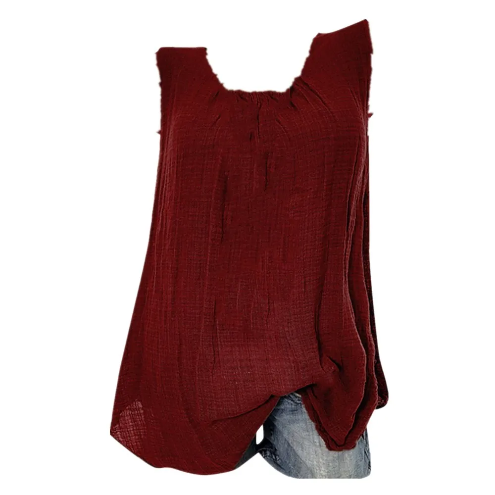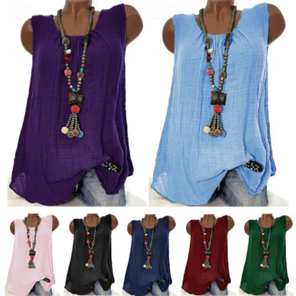 Хлопковая льняная рубашка без рукавов, Женская размера плюс винтажн...
