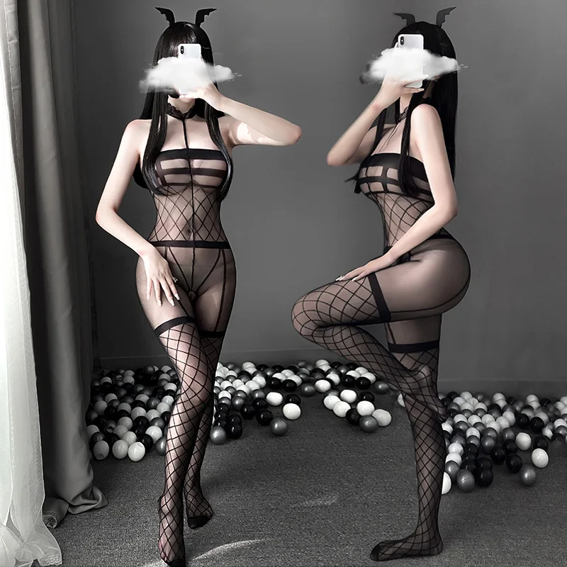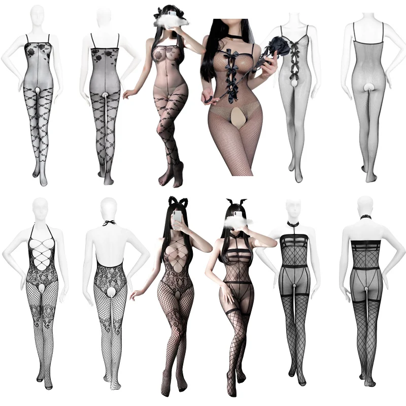Ажурные Комбинезоны, сетчатые чулки с открытой промежностью, Женская чувственная черная эротическая одежда, женская одежда для сна