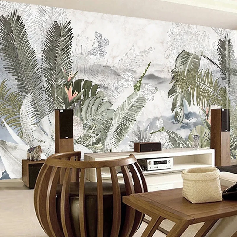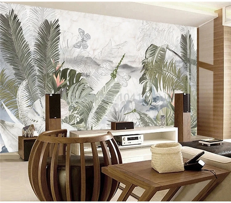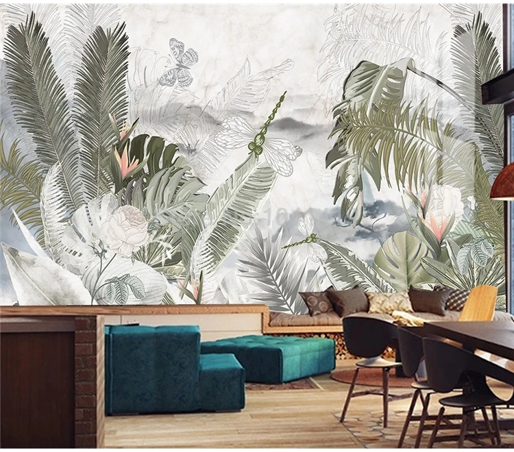 Пользовательские Настенные обои скандинавский ретро ручная роспись 3D растительный фон с тропическим лесом настенная живопись ресторан кафе Papel де Parede 3D