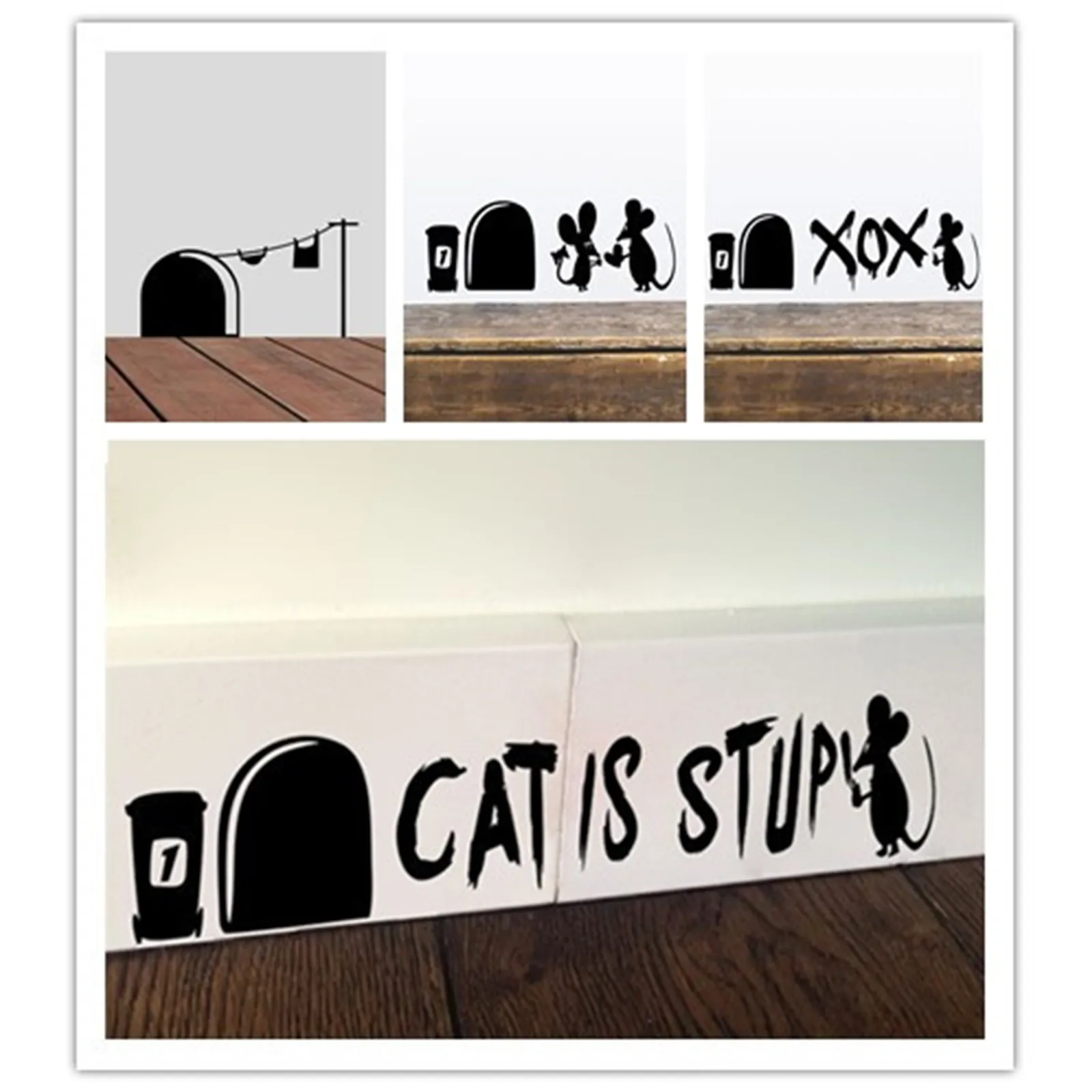 Настенная Наклейка с отверстием для мыши, стирающаяся Виниловая наклейка для мыши, домашняя плинтус, смешная настенная наклейка из ПВХ для дома, детской комнаты